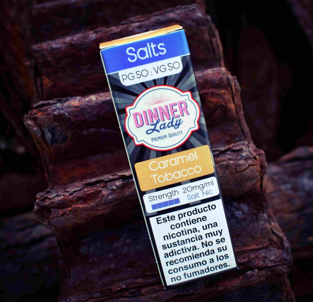 Caramel Tobacco – Combining tobacco flavourings with caramel, vanilla and honey, Caramel Tobacco Dinner Lady 50:50 Nicotine Salts formulation most closely replicates the experience of smoking traditional tobacco products.