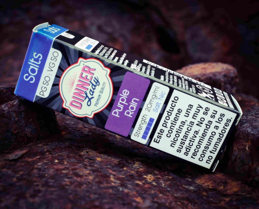 Purple Rain – Combining the tart flavours of raspberry, blueberry and lemon, the Purple Rain Dinner Lady 50:50 Nicotine Salts formulation most closely replicates the experience of smoking traditional tobacco products.